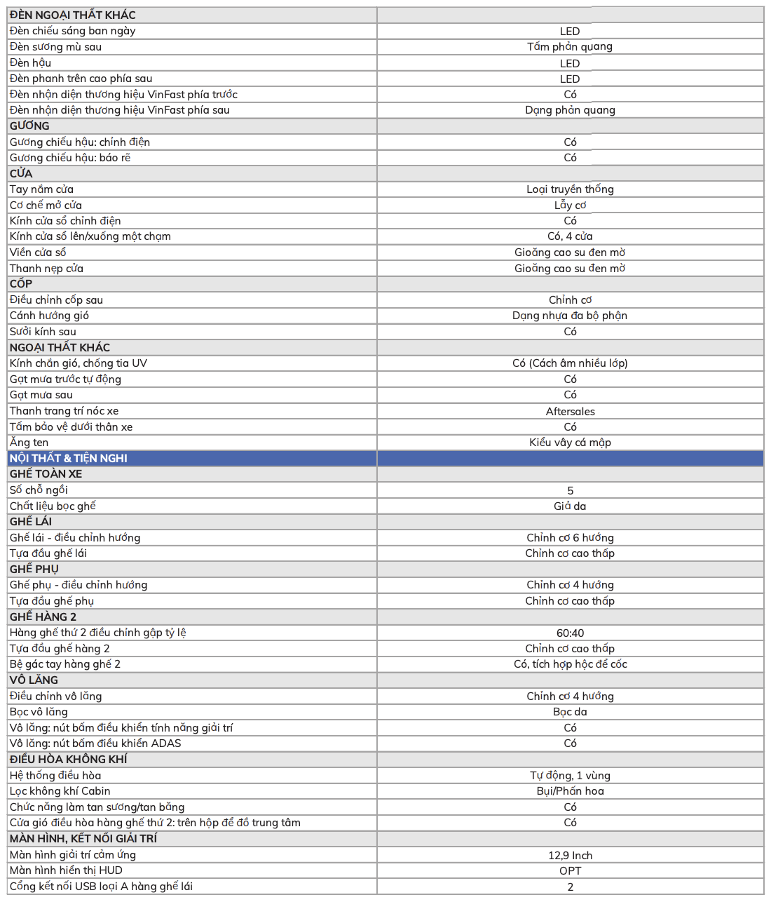 Thông số cơ bản của mẫu xe VF6 Eco & VF6 Plus